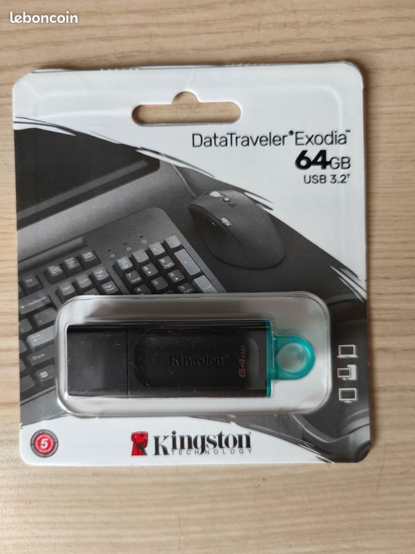 La clé USB Kingston DataTraveler Exodia 64 Go USB 3.2 Gen 1 est une solution de stockage très abordable et polyvalente, conçue pour un usage quotidien au bureau, à la maison ou en déplacement.