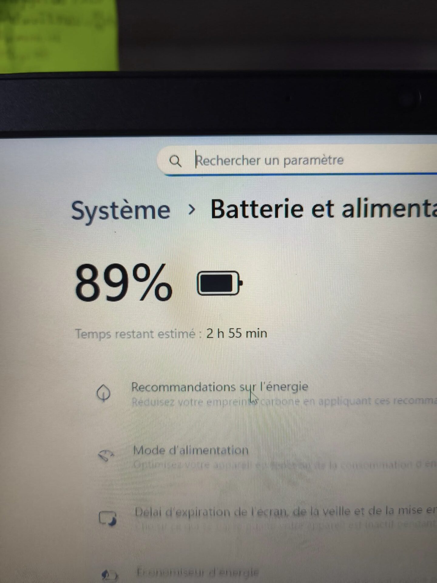 Batterie : Usure 15 %, autonomie environ 3 à 4 h