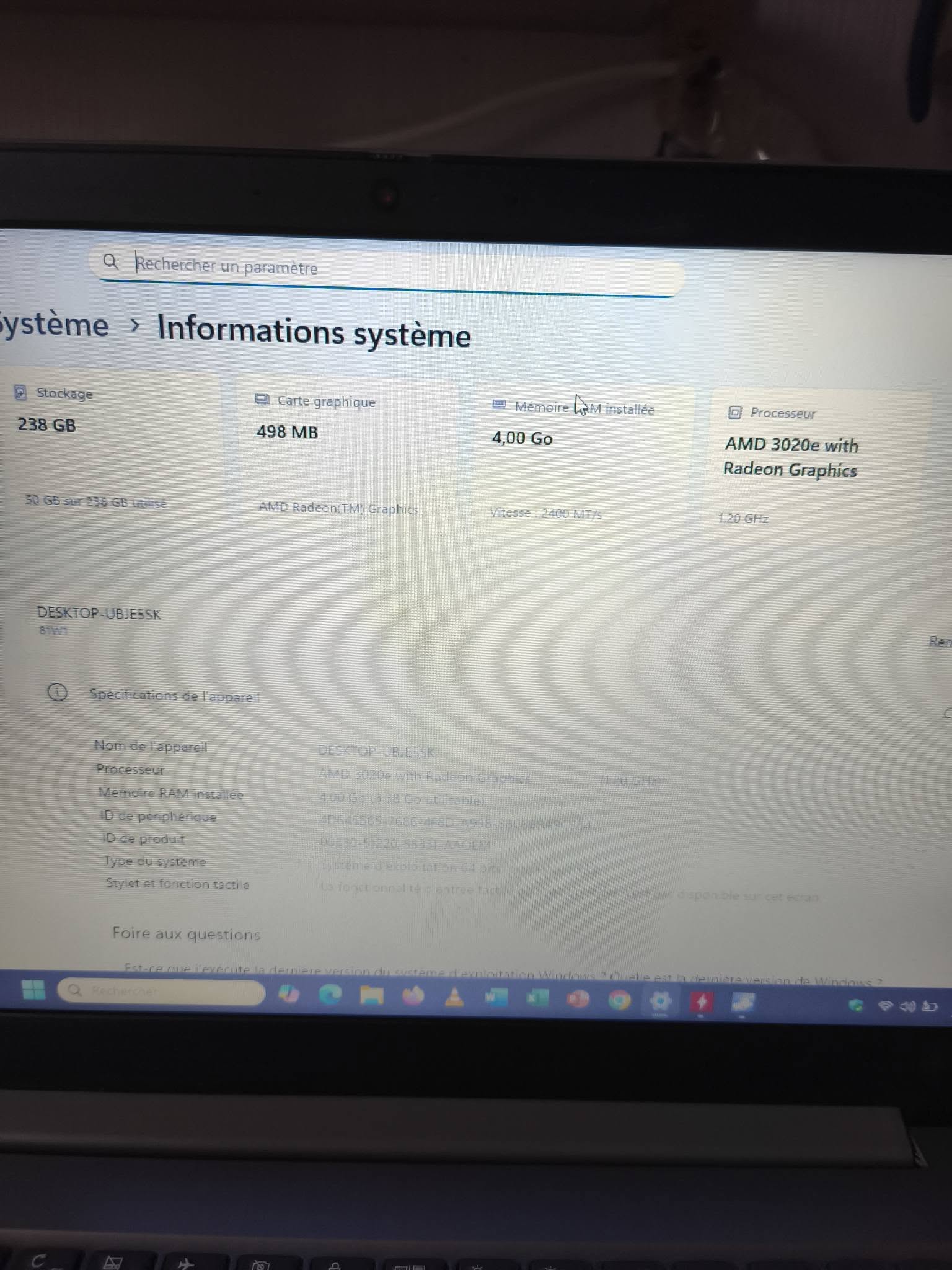 Processeur : AMD 3020e (1,2 à 2,60 GHz)