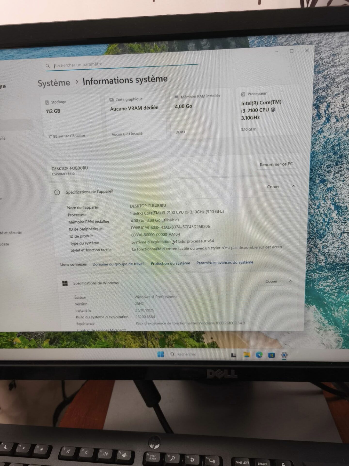 - Windows 11 Professionnel et Pack Office 2021 sont inclus, couvrant les besoins bureautiques essentiels.
