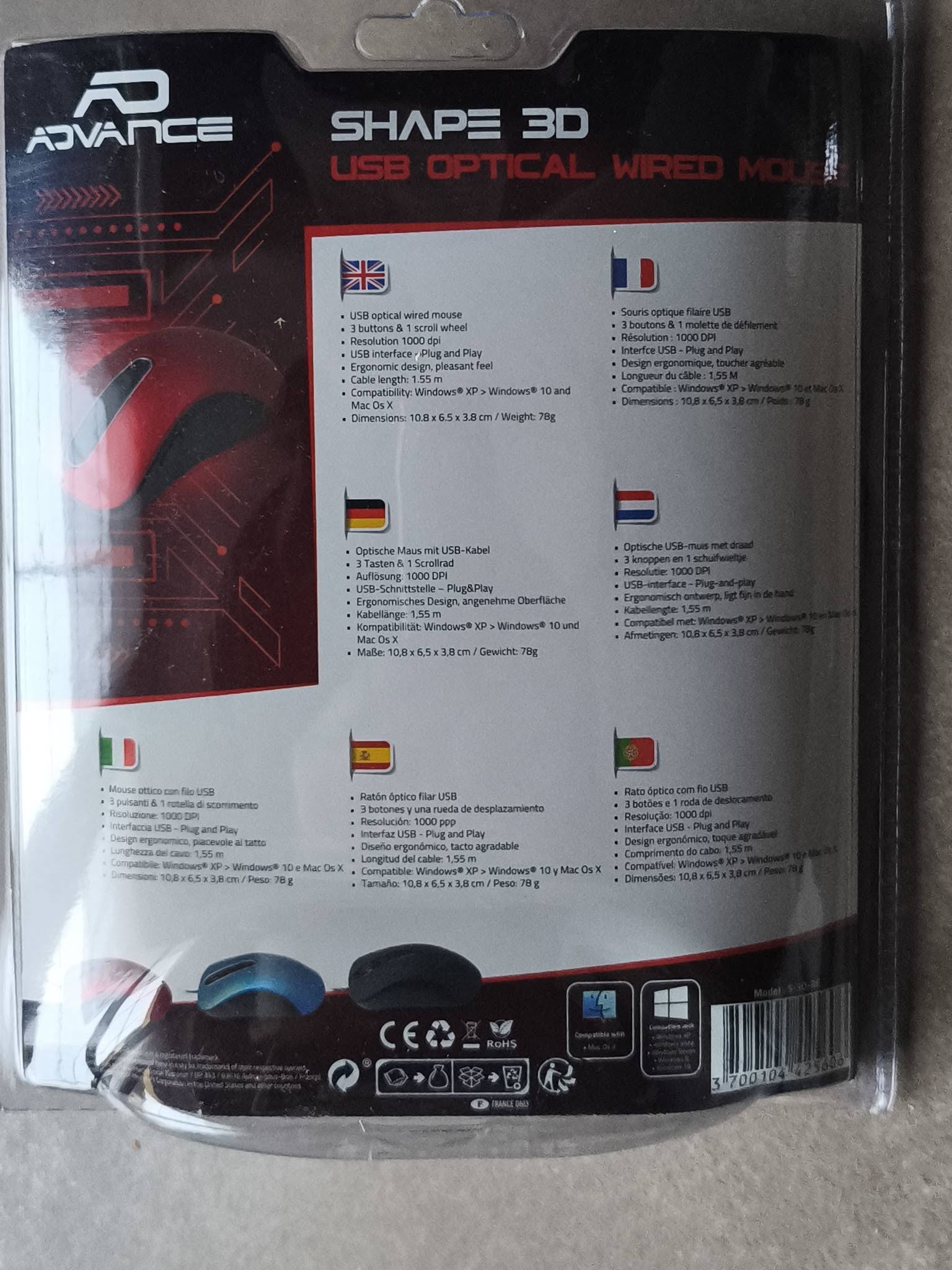 Ajoutez une touche de dynamisme à votre installation avec la Souris filaire Shape 3D Advance rouge, neuve et prête à l’emploi. Son design ergonomique assure une prise en main confortable, parfaite pour une utilisation bureautique, scolaire ou multimédia.