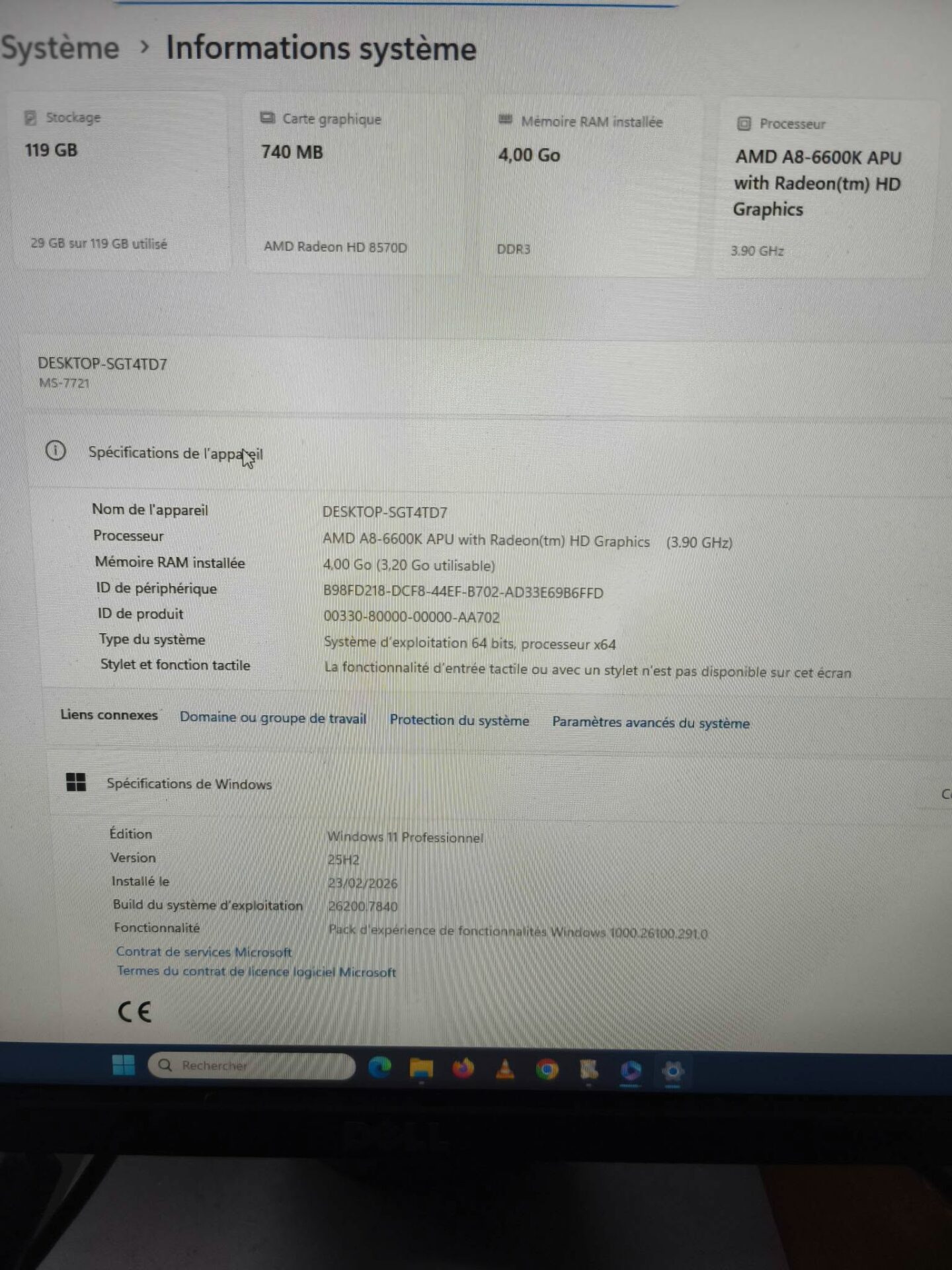 Windows 11 Professionnel installé et activé
