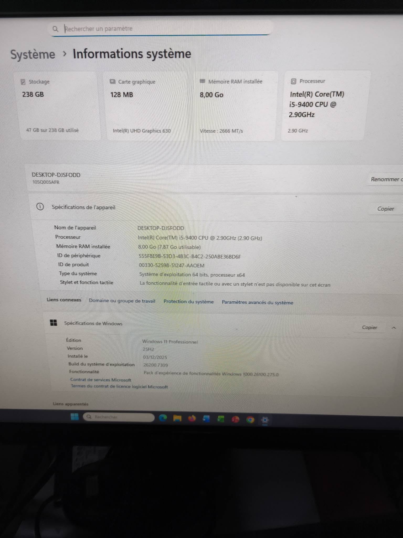 Système : Windows 11 Professionnel