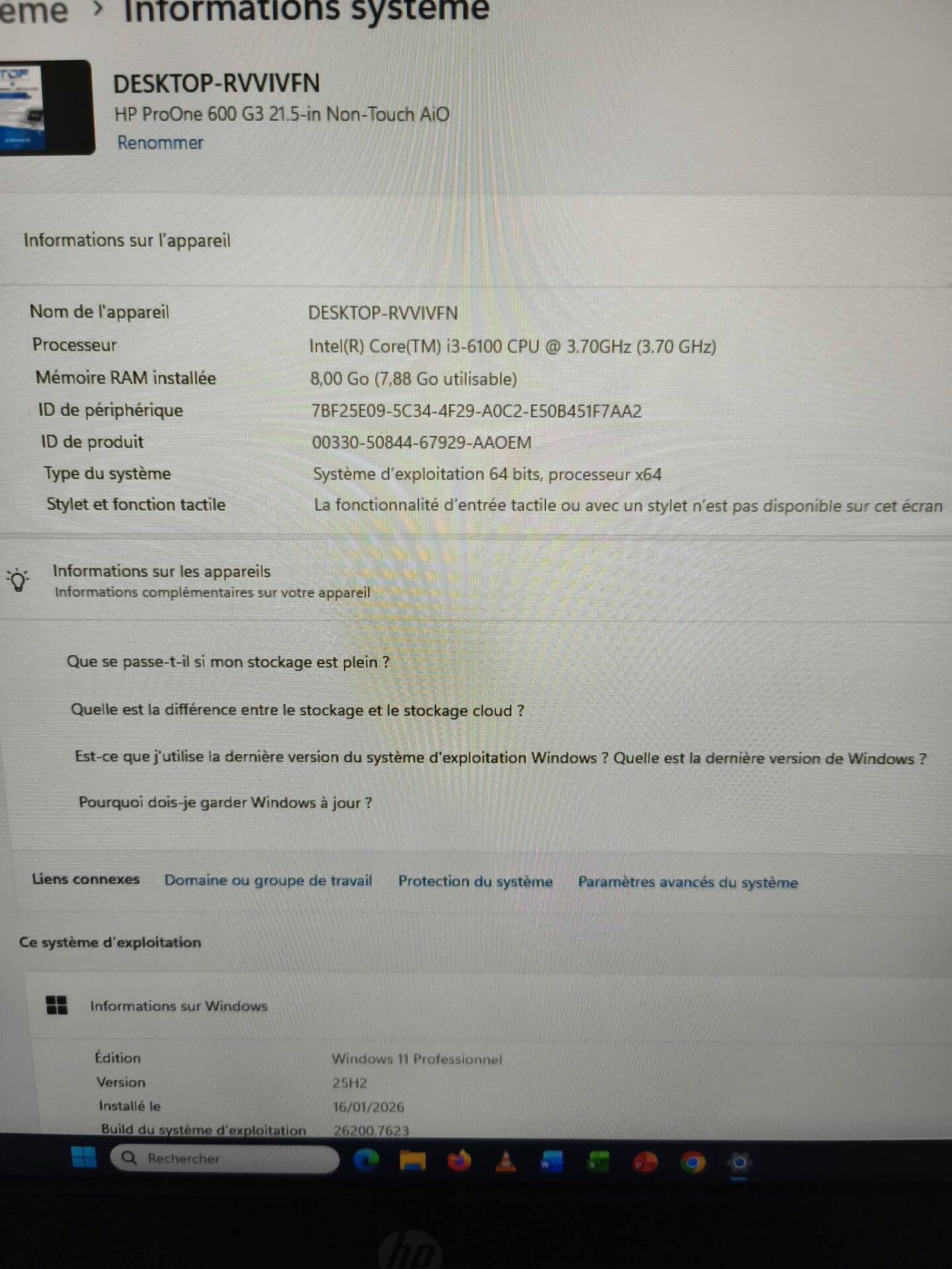 Ordinateur Tout-en-Un HP professionnel, reconditionné, prêt à l’emploi et parfaitement adapté à un usage bureautique, administratif ou familial.